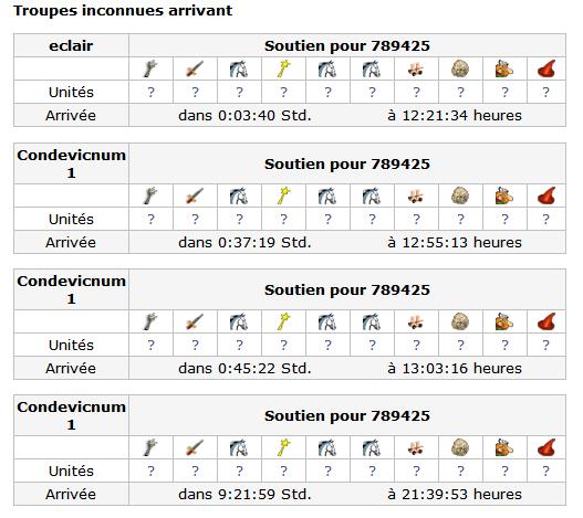Avec mon conseiller-stratège, nous avons lancé des vagues d'eclaireurs sur toute la région, mais notre choix se reposa sur un village, un seul et unique pour le moment, où toutes nos attaques se concentreraient, s'uniraient pour enfin voir un autre peuple se joindrent à nous ! Après de multiples catapultage, des batailles acharnées, et une assistance énnemie désorganisé... le village fut notre.. Ajourd'hui, j'ais décidé que mes hommes le méritaient... L'hydromel, les femmes, (les hommes pour certains) sont à mes frais. Ils m'ont aidé a gagner cette bataille, cependant la guerre ne fait que commencer... DeAmOnS Général des armées de Reborn __________________________________________________ ___________ Donc voila, sympathique, un nouveau village les Glad sont vraiment désorganisé, j'ais détruit 2 assistances, et maintenant que le village est a moi, il reste encore des assistances qui arrivent, (je vais transferer avec le marché les céréales, si jamais le village passe en négatif en prod... Ciao les assistances ^^ ) Mais maintenant j'aurais besoin de votre aide :D pour détruire totalement à la catapulte, les villages suivant : 1565478 et Nouveau village (-55;44) Le joueur Dow ne réagit plus, je pense qu'il a abandonné le jeu, et j'ais besoin de rayer de la carte ces villages pour pouvoir en coloniser d'autres depuis ce village Donc si quelqu'un veut bien lancer ces catapultes ! Donnez mois leurs heures d'arrivées, et je veillerais a lancer des Impérians pour raser le peu de défense (que je rase toutes les 3heures, pour mes propres catas) pour vous éviter de malheureuses pertes !!! ![]() Merci à tous d'avoir lu, et bonne journée ! EDIT : je suis passé au classement, de la place 280 à 142. Reborn Francon 3899 7