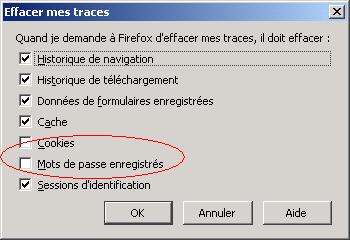 Je ne demande pas d'effacer mes traces et de toute façon, l'option des mots de passe est décochées.
