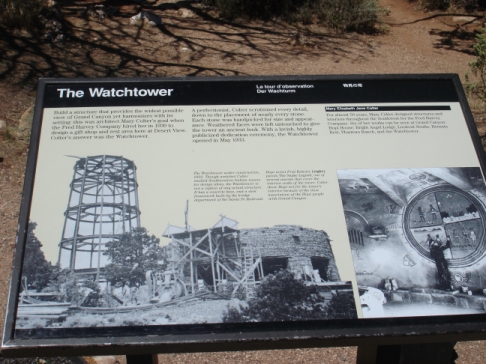 @ Pumba : On n'est pas sorti le soir à Palm Springs un peu crevé déjà en fait Bon, toujours la même journée, on continue à longer le Grand Canyon et on s'arrête un peu plus loin à la Watch Tower. Cette tour qui a l'air ancienne est en fait récente mais construit de style ancien pour se fondre dans le paysage et rappeler l'architecture indienne locale (Nous sommes en pleine réserve indienne Navajo). La deuxième image est une des nombreuses explications dont je parlais et que l'on trouve partout, quasiment toujours uniquement en anglais (sauf dans les missions qui proposent plusieurs langues). Il n'en reste pas moins qu'elles sont vraiment intéressante... A la suite, les dernières vues du Grand Canyon prises depuis le haut de la tour car on a encore pas mal de route