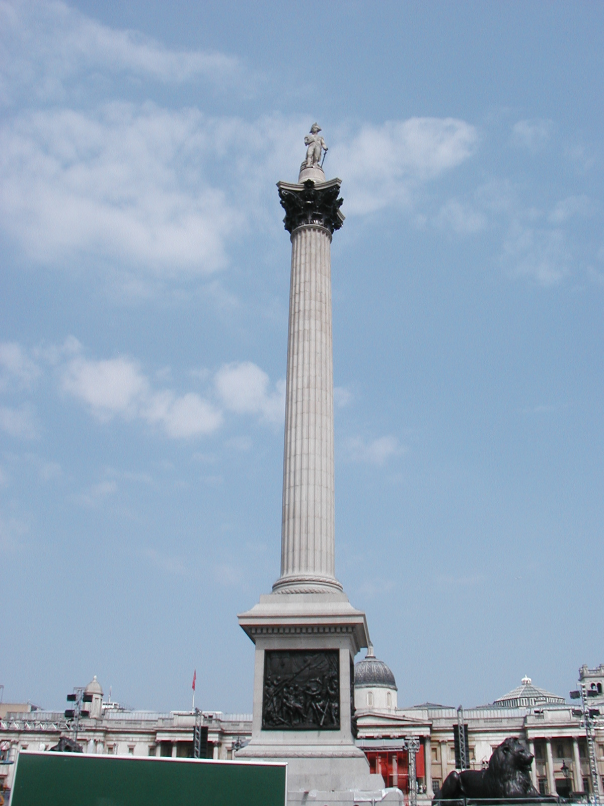 Tiens, veinard, tu as pu voir la colonne de Nelson ?! J'y suis parti début juillet et elle était invisible (comme le lion) , entierement empaqueté dans un échafaudage style condom géant