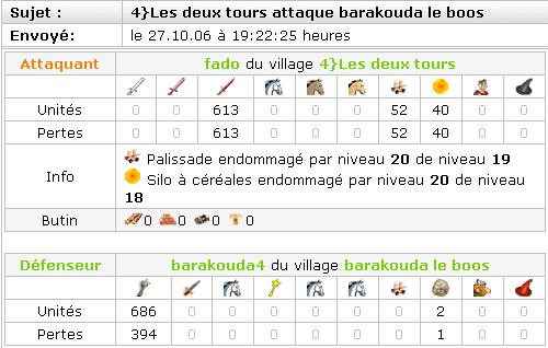 Les RC sont rigolo : Désolé fado, je ne te connaissais pas, mais tu es un gars fashion bon courage pour la suite. C'est le gars avec un seul village le plus balaize que je connaisse... et en plus il attaque à la catapulte la nuit. bon, je lui envoie un message ? trop tard je vais le faire