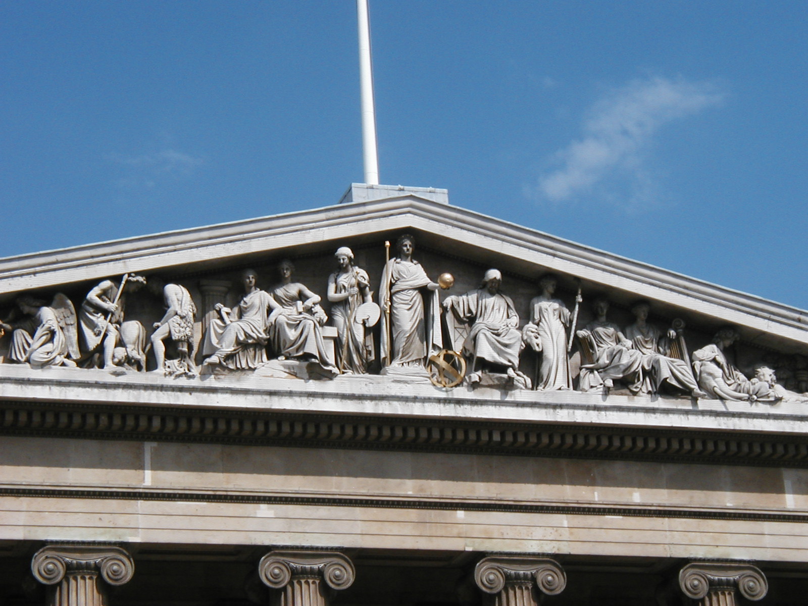 Le British Museum avec entres autres, la frise du parthénon, la pierre de Rosette, le Discobole et un sphinx perse.