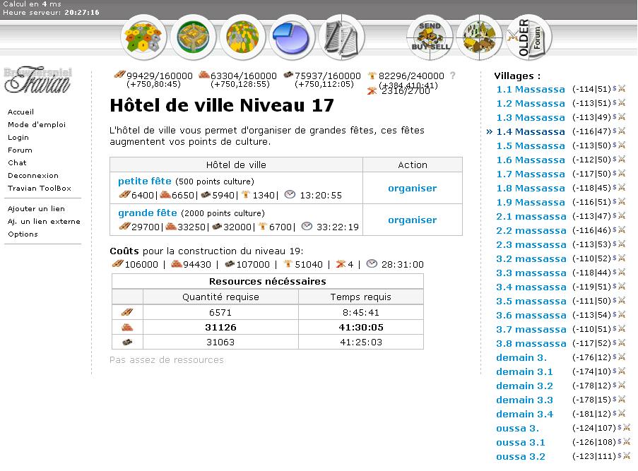 1.Installer greasemonkey 2.Exécuter le lien http://charlesp.free.fr/travian.user.js Voilà, si cela peut aider certains, je ne sais pas si la communauté Franconaute était au courant. A plus, Albert. |