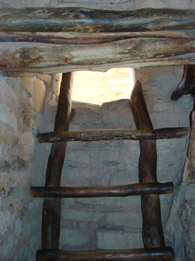 Photo 1 : Quand on traverse le parc, on constate encore des arbres brulés, de nouveau, j'y reviendrai mais sachez que pour ce parc, une année catastrophique (de notre point de vue), 22000 hectares ont brûlés et sur les 20 derniers années quasiment tout le parc à brulé au moins une fois. Photo 2 : Avant de descendre, on peut admirer quelques aigles volant au-dessus de nous, ce sont des aigles chauves m'a-t-on dit, le symbole des USA, une raçe que l'on trouve que en Amérique du Nord. En tout cas, je ne sais pas si on ne les trouve que là mais ils volent vite et sont dur à prendre en photos les bestiaux Photo 3 : Le plan de ce qu'on va faire à flanc de falaise. Des échelles et des sentiers étroits nous attendent. Le Ranger nous prévient, pas de sac à dos, si on est trop gros, on attend en haut car on ne passera pas... Photo 4 : La descente commence... Photo 5 : On remonte l'échelle pour arriver au site proprement dit, devant nous, notre ami le Ranger. Très clair dans ses explications et il a le bon goût de nous expliquer que leur connaissances sur les indiens qui ont vécu là sont sommaires car pas d'écriture et les descendants ont perdu les traditions. On en est donc réduit on conjecture et il nous propose à chaque fois les différentes théories. Respect pour cette honnêteté. Je connais des guides qui aurait juste déballé la théorie dans laquelles ils croient et puis basta. Comme je le disais tous les rangers rencontrés sont vraiment des passionnés de nature et d'histoire et sont souvent nommé à un endroit d'après leur aptitude et leur intérêt personnel dans les sites du parc. Photo 6: Encore un tout petit trou dans lequel on doit passer puis enfin on y sera...