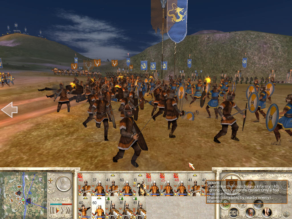 - De nouvelles capacités pour les unités, par exemple la capacité "mur de bouclier", ou bien plus intéréssant encore la capacité pour le unités légères de nager, qui permettra de prendre par les flancs une armée se croyant à l'abri derrière le pont ou le gué .