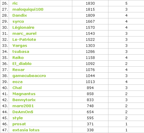 Y'a moyen de voir le classement à points ? Olala, je floode ce soir...