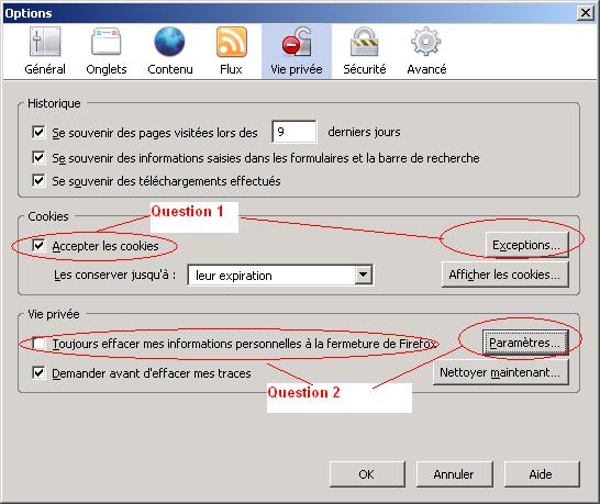 Question 1 : Comment as-tu paramétrer la gestion des cookies ?