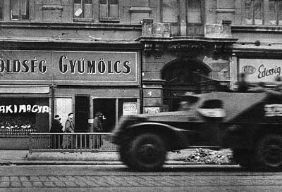 Cette année là ,donc, après la déstalinisation prônée par Kroutchev en février, monta une agitation croissante dans cette république balkanique, la foule exigeant le rappel d’un modéré exclu l’année précédente du PC : Imre Nagy. Celui-ci était autant apprécié de la rue hongroise que les durs du régime et fidèles exécutants de la politique de Staline, Rakosi et Gérö en tête, étaient eux détestés. Cependant les manifestations hostiles au pouvoir s’amplifiaient, en solidarité avec des troubles analogues se déroulant en Pologne. Un autre dirigeant communiste refit alors son apparition, un survivant des purges staliniennes, Janos Kadar. . L'« Octobre polonais » accru l'agitation de la jeunesse, au point que Gerö fit appel aux troupes soviétiques le 24 octobre 1956. Imre Nagy fut nommé Premier ministre le même jour, et J Kadar, le 25 octobre, remplaça Gerö à la tête du parti communiste. Mais l'agitation tourna à l'insurrection nationale. En effet, suite à des manifestations de plus en plus massives, les événements devinrent dramatiques lorsque la police politique tira sur la foule le 25 Octobre devant le parlement. Dès lors, dans un contexte incontrôlable, I Nagy dépassé, ne pu empêcher le pire, malgré ses appels à la négociation. Après un simulacre de retrait, le 4 novembre 1956 les troupes soviétiques attaquèrent Budapest en force, à la demande d'un nouveau gouvernement dirigé par Kadar. Les combats se seraient poursuivis dans les localités ouvrières jusqu'au 13 novembre, et des grèves durèrent longtemps, le gouvernement Kadar s'imposant difficilement. Finalement Nagy, un temps réfugié dans l’ambassade yougoslave, ainsi que trois de ses collaborateurs, seront jugés secrètement et exécutés le 16 juin 1958. La révolution hongroise aurait fait 25 000 morts et près de 200 000 exilés. En 1988 I. Kadar fut déposé, prélude à la révolution tranquille de 1989, ou la Hongrie joua le rôle d’éclaireur pour toute l’Europe de l’Est. ![]()