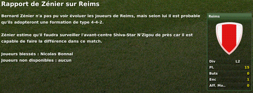 Rien d'anormal concernant l'adversaire. Pas de rencontre précédente, pas de conflit entre les clubs. Je suis donné à 2.25 et Reims à 2.75 ce qui est correct.