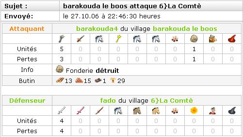 Les RC sont rigolo : Désolé fado, je ne te connaissais pas, mais tu es un gars fashion bon courage pour la suite. C'est le gars avec un seul village le plus balaize que je connaisse... et en plus il attaque à la catapulte la nuit. bon, je lui envoie un message ? trop tard je vais le faire