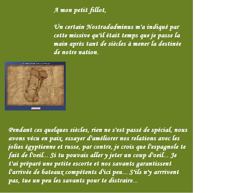 J'espère avoir le temps de la jouer dimanche. En tout cas, le défi est intéressant (Y a combien de civs ?)
