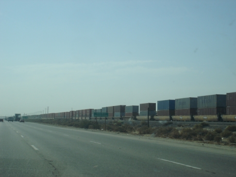 Ca y est, cette fois, on est vraiment parti pour les parcs nationaux et la nature. Bon comme vous le voyez sur la première photo, c'est pas trop dur, c'est tout droit En sortant de Palm Springs, on passe par un gigantesque champ d'éolienne, plus que je n'en avais jamais vu, la photo donne peu l'image de la taille du champ mais c'était impressionnant. (En fait, on verra encore plus grand au retour vers San Francisco mais je ne le savais pas) Je vous ai mis une photo aussi de notre train record à 121 wagons, énorme, en plus deux containeurs par wagon... Trois locos pour tirer cette chose Un peu plus tard, on rentre dans le Joshua Tree National Park. Il faut savoir que le gouvernement a chargé une agence de la protection, la gestion de grand patrimoine naturel, le National Park Service, les fameux Rangers. Il y a dans chaque parc, au moins un visitor center avec un ou plusieurs rangers qui sont là pour guider donner les conseils et toucher les "fees" / droit d'entrée du parc. Nous avons pris un pass annuel à 80$ pour la voiture sachant que le prix d'entrée varie de 5 à 25$ et que nous allions en faire au moins une dizaine, notre calcul était vite fait. De plus, on recoit à chaque entrée une brochure avec les nouvelles du parc et son plan. Sachant que certains sont énormes (9000 km2 pour le Yellowstone (1/3 de la Belgique), c'est fort utile... Le Joshua est un désert en fait, mais on y trouve pas mal de variété de cactus, je vous ai mis qqs photos La dernière photo est un bus scolaire américain, il n'a rien de spécial mais je voulais raconter que pour l'anecdote, le bus scolaire est avant les flics ou les pompiers, le véhicule le plus respecté par les américains. Quand il s'arrête, il met ses clignoteurs oranges : interdiction formelle de le dépasser ! Par contre, quand il met ses clignoteurs rouges, cela veut dire que des enfants en descendent et tout le trafic s'arrête dans tous les sens !!! Une bonne leçon pour nous, européens, qui ne respectons que peu les zones 30 des écoles... Les zones des écoles ont le même genre de système tout aussi efficace et très respecté par les conducteurs...