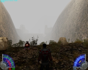 Une fois son cas reglée, je continu, passe devant un graaaaand fossé à droite, (où je meurt si je saute ) et arrive en fin de vallée dans un cul de sac