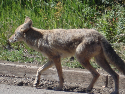 Photo 2 : Plus tard, sur la route toujours dans le parc, nous croisons notre première bête terrestre inhabituelle en Europe, un coyote, tranquille, il a trottiné quelques minutes à côté puis devant la voiture.