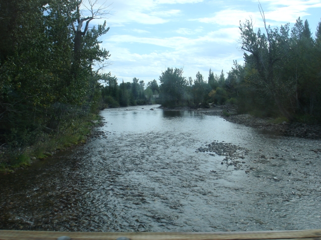 en comptant les arrêts ).Le programme d'aujourd'hui, le Grand Teton NP et le Yellowstone où nous logerons 2 nuits, un des autres points forts du parcours, puisqu'il est fort réputé également. On décide donc de partir vers 8h du matin pour pouvoir encore faire un tour dans le dernier parc. Photo 1 : En quittant Vernal, on dit au revoir au dernier dinosaure (Denver ? ), je le trouvais sympa.Photo 2 : Cette fois-ci plus de ligne droite, c'est valloné et ça tourne... Les paysages qui se sont considérablement verdi depuis les déserts restent somptueux. Photo 3 : Sur la route, on traverse un barage, on décide de s'arrêter un peu plus haut pour prendre quelques photos, en Belgique, on n'a pas de barrage digne de ce nom Photo 4 : Une vue du réservoir du barrage. En fait, le lac s'étale en longueur mais comme nous n'étions pas en hélico, c'est difficile à faire percevoir. Photo 5 : Et comme d'habitude, le petit panneau explicatif ou de données concernant le lieux. Il est par contre rare qu'ils indiquent les mesures européennes, je vous les donne donc. Photo 6 : Vers 14h, on arrive à Jackson, une ville qui garde un certain cachet de l'ouest... Photo 7 : Cela aurait presque pû être un Saloon de l'ancien temps Photo 8 : Cette petite ville est "célèbre" pour avoir la plus grand arche du monde en bois de cerf, d'où la photo. A suivre le Grand Teton National Park, qui fera plaisir au français et aux obsédés