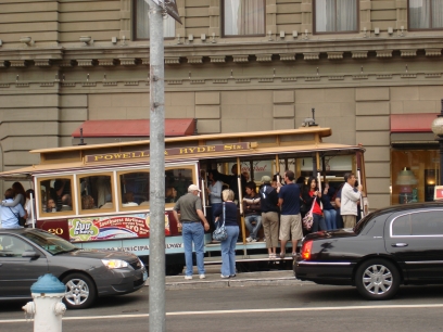 Sur la première photo, un Cable Car, il reste 3 ligne en activité, c'est une des attractions touristiques majeures de la ville. On ne l'a pas utilisé pour des raisons de timings (plus de 3h30 d'attente avant de pouvoir monter dessus). La seconde photo est la fameuse porte de Chinatown. Une fois passé, cette porte, on se retrouve en vrai quartier chinois. Beaucoup de boutiques de touristes néanmoins... La troisième photo, un camion de pompier pour le fun et parce que de nouveau, le camion américain a quand même un autre gueule que les nôtres Quatrième photo, sur le Pier 39, une colonie d'otarie (ultra protégée) a élu résidence... S'il n'yavait l'odeur et le bruit, c'est vraiment chouette d'avoir ce genre d'animaux en "pleine" ville. Cinquième photo, la fameuse Lombard Street, la rue la plus pentue du monde (disent-ils)... Très joli néanmoins et la pente est vraiment impressionnante. Sixième photo, une vue depuis la baie. On a pris un tour touristique amphibie qui incluait une petite ballade dans la baie. Pour l'anecdote, c'était une vraie barge du D-Day. Dernière photo, les rues de San Francisco sont pentues et à pied c'est hard. Celle-ci n'est pas dans les plus pentues, mais on faisait une petite pose à chaque bloc. Là on était en route pour la Lombard Street. PS: si vous le désirez, j'ai une petie vidéo des otaries pour entendre le boucan que cela fait