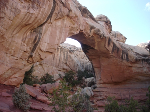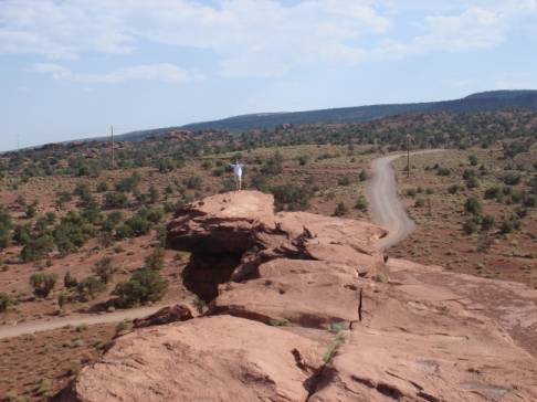Photo 2 : Un peu avant d'entrer dans le parc, on s'arrête devant un panneau explicatif comme il y en a partout. il est intéressant car il montre la même vue si on avait la pollution urbaine à cet endroit là. (J'espère que vous le verrez bien sur la photo) Photo 3 : Je fais un peu le pitre, perdu dans l'immensité rouge... Photo 4 : Arrivé dans le parc, on fait notre randonée du soir, la plus courte hein faut pas pousser. Photo 5 : Pour indiquer le chemin, les rangers ont fait des petits cairns sur le trajet... Pour aider, on en fait un aussi avant de lire 500 mètres plus loin qu'il est strictement interdit de faire ses propres cairns ![]() Photo 6 : La destination, une magnifique et monumentale arche naturelle. Photo 7 : Dans le parc, une toute petite école mormonne... 4 élèves et l'institutrice doivent y être à l'étroit...
