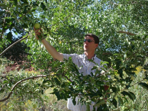 Photo 2 : Notre destination pour le moins originale, des pommiers en fait à leur installation, il y a une centaine d'année, la communauté mormone locale a planté des pommiers et ceux-ci sont toujours exploité par les habitants des environs. Il y a une petite particularité à ces vergers, on peut y cueillier ce qu'on veut. A une petite exception, à la sortie, il y a une petite balance, une petite tirelire et un tarif, vous êtes sensé prendre les pommes dans le verger, les peser et les payer vous-même, une sorte de self service naturel quoi.L'argent sert au propriétaire du verger pour continuer à l'entretenir. Comme d'habitude, je n'ose imaginer cela dans nos contrées, où le verger serait pris d'assaut et sans personne pour payer à la sortie. Ici personne à 20 kms à la ronde... Photo 3 : On reprend la route mais on voit bien que le paysage s'applatit. Photo 4 : De plus en plus plat et on a quitté le rouge de Capitol Reef... Direction le plus chouette parc pour ma Princesse, le second pour moi (après le Yellowstone, plus diversifié). Photo 5 : Bryce Canyon... Je dois être honnête, en beauté pure, il est mille fois plus beau que le Yellowstone et deux fois plus que le Grand Canyon. Vous verrez demain...