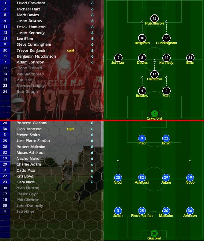 Première élection de l'entraîneur du mois, et c'est moi qui remporte la palme Et Hamilton, mon milieu défensif, est meilleur jeune du mois .Volkan Glatt, mon ailier droit a été sélectionné en équipe nationale turque pour la première fois C'est sûrement le fait de jouer dans la grande équipe de Queen's Park qui a dû motiver le sélectionneur (et il a été titulaire, et non rentré comme remplacant hein ! ) . Bon ok il a été nul puis remplacé mais quand même ![]() Nous affrontons Dundee à domicile . Equipe plutôt moyenne, voire une des plus faibles pour le niveau, ils étaient en division inférieure il y a deux ans . A ne pas confondre avec Dundee United qui elle est une grosse équipe . Bref j'espère une victoire . ![]() 1ère mi-temps : Dundee semble déterminé et nous met la pression . 20' la balle heurte la transversale ... 22' transversale 26' but 1-0 pour Dundee . Maintenant nous prenons le relais ... égalisation à la 33' ... puis maintenant Dundee remet la pression 2-1 pour Dundee à la 34' et hop ca repart de notre côté :match de tennis: (en gros celui qui marque défend après jusqu'à se prendre un but, et repasse ensuite à l'attaque ... ca éclate peut être les joueurs mais pas moi ) . 45' égalisation ! Et non l'arbitre refuse le but la pression est énorme, 3 corners vont se succéder dans les arrêts de jeu, mais Dundee s'en sort très bien malgré de grosses occasions, toujours 2-1 . 2ème mi-temps : les 10 premières minutes seront largement dominés par Dundee qui se créera pas moins de 4 occasions en si peu de temps, mais heureusement pour nous ca ne donne rien ... mais pour le moral ce n'est pas bon . 71' Corner pour Dundee ... premier poteau ... tête qui coupe la trajectoire de la balle ... fantastique arrêt du gardien, il est en position idéale et relance très vite devant . Cunningham part très vite en contre, Dundee n'a pas reprit sa position, il efface le défenseur en fesant une passe à Johnson qui se retrouve seul face au gardien ... il tire ... ca frôle le poteau ! Dommage belle action qui aurait pu aboutir . 76' Benjamin récupère le ballon repoussé par le gardien, il n'y a qu'à pousser un peu et ... BUUUUUUUUT ! Egalisation alors que Dundee contrôlait le match ! 84' centre, tête de Benjamin ... BUUUUUUUUUT ! Benjamin renverse complètement la tendance qui nous donnait perdant ! Dundee tentera de réagir mais dans la précipitations ne fera que des hors-jeu . Superbe victoire 3-2 ![]() Les Rangers qui rencontraient les Celtic se contenteront d'un nul, nous reprenons la première place ![]() Match à l'extérieur contre Hibernian ... l'autre équipe qui n'a pas voulue de moi comme entraîneur Grosse équipe aussi qui sera très dur à battre .![]() 1ère mi-temps : Hibernian commence très ... mais alors vraiment très fort ... 2' tir et poteau ! La balle est reprise et BUT ! 1-0 pour Hibernian . 11' le buteur d'Hibernian se trouve on ne sait comment seul dans la surface ... 2-0 28' centre et reprise de la tête 3-0 ! On est en train de se prendre une fessée monumentale là Pendant que nous avons eu 2 ou 3 ballons qui frôlent la barre, eux mettent des buts ... c'est ca la différence majeure ... mais visiblement ca a fait un énorme électrochoc dans mon équipe ... 35' 3-1 ... mouais ca sert à rien mais c'est deja bien pour l'honneur ... 37' 3-2 ! 39' transversale ! 3-2 pour Hibernian à la pause, incroyable retour de Queen's Park dans le match Même si Hibernian est supérieure et archi favorite, nous avons encore nos chances .2ème mi-temps : double remplacement, un buteur (Hutchinson ne semble plus être dans le coup depuis 3 matchs ... je vais commencer à mettre sérieusement sa place de titulaire en question) et un défenseur (pareil pour Whitebread) . Reprise du match et l'équipe semble fonctionner bien mieux, elle domine Hibernian . 53' centre en boulet de canon de Harper ... on se demande ce qu'il espérait faire avec ca ... mais c'est sans compter Gough qui est rentré à la pause poussant le ballon au fond ! 3-3 :langue: 57' encore Gough 4-3 pour Queen's Park 72' 5-3, l'équipe était complètement survoltée et Hibernian KO, ils n'ont absolument rien fait jusqu'à présent dans cette période . 75' 6-3 pour achever l'adversaire ... Hibernian se réveille seulement maintenant mais ca ne suffira pas, et le manque de réussite les accompagnera (poteau) .Menés 3-0 nous avons retournés complètement la situation pour gagner 6-3 . C'est inespéré En tout cas ca leur apprendra, ils n'avaient qu'à me prendre comme entraîneur ![]() ![]() Cela constituera un nouveau record de buts après notre 6-2 en tout début de saison . Queen's Park n'est là que depuis quelques semaines à ce niveau de la compétition et il se distingue deja ![]() Légère mise au point : comme deja dit Whitbread et Hutchinson ont intérêts à se distinguer dans le prochain ou 2 prochains matchs, sinon ils perdront leur titularisation A noter aussi qu'on a la plus mauvaise défense du championnat avec 14 buts encaissés en 7 matchs Je savais bien que ce serait notre point faible, mais quand même Mais notre attaque est telle qu'elle compense largement et nous permet d'être en tête ... 25 buts inscrits en 7 matchs, le second n'en a marqué que 14 3ème tour de la Coupe de la Ligue contre une équipe de D2, bref pas trop de danger . ![]() Première période avec une logique domination de notre part, 3-1 à la pause . Whitbread et Hutchinson ont l'air de comprendre en tout cas, et réalisent peut être leur meilleur match de la saison (pourtant j'ai pas techniquement la possibilité de le leur faire comprendre qu'ils sont sur la selette) .Des tonnes d'occasions et 3 tirs sur la barre plus loin, 4-1 score final . Hutchinson homme du match et Whitbread avec une note de 8, ce qui est très bon pour un défenseur . En même temps ils sont toujours autant menacés ... c'était un match contre une petite équipe là ![]() ![]() Au prochain tour 