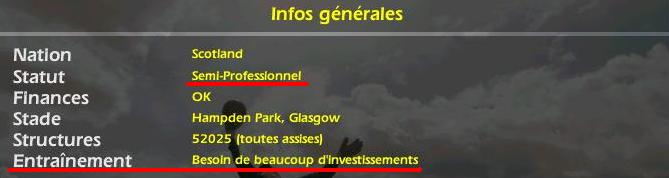 Mon milieu défensif Hamilton est élu meilleur joueur du mois ![]() Gros problèmes en vue ... quasiment tous les prêts se terminent les uns après les autres . En effet je ne savais pas que j'allais devoir jouer des matchs de poule par la suite, donc je ne me suis basé que sur mon calendrier . Du coup beaucoups de joueurs partent, et il faut espérer que les joueurs clés au moins veuillent bien revenir pour un mois supplémentaire ... sinon ca va très mal finir pour nous ![]() Fesons le bilan à l'aube du match contre les Rangers : je n'ai plus mes deux ailiers gauche ... et j'ai perdu 3 remplacants sur 5 . Bon c'est pas génial mais ca aurait pu être pire . L'important est de ne pas perdre face aux Rangers pour être sûr de conserver notre seconde place . Match contre les Rangers donc, mais à l'extérieur Bon on a quand même un avantage : ils font jouer Crouch ![]() ![]() 1ère mi-temps : bon ben là pas grand chose à dire ... les statistiques suffiront je pense Sinon je résume quand même : on est mal ![]() ![]() 2ème mi-temps : la seconde mi-temps sera plus équilibrée et aucune action sera vraiment dangereuse . Score final 0-0 . Mon gardien est homme du match ... j'ai besoin de dévelloper d'avantage ? ![]() Quoi qu'il en soit nous sommes assurés de finir second ![]() ![]() Mais coup de tonerre ! Le Celtic s'est fait littéralement exploser ![]() Bref énorme surprise ! Non seulement le match nul nous permet de conserver à coup sûr la seconde place ... mais en plus on peut toujours remporter le titre ! ![]() [TABLE][TD]Flash info : Elimination de Tottenham et Newcastle lors des demis finales de la Champions League . La finale sera un derby entre l'AS Roma et la Lazio de Rome .[/TD] [/TABLE] Pour les prêts on est à la frontière d'un scénario catastrophe ... et ca à un match de la fin C'est près de la moitié de mes joueurs qui ne reviendront pas jouer le dernier match . Match contre Aberdeen à domicile . Pendant ce temps le Celtic recoit Falkirk ... une défaite ou un nul de leur part semble peu probable, mais c'est la condition sine qua none pour espérer emporter le titre . Quant à nous, nous n'avons pas le choix : il faut vaincre ... et vu les circonstances cela rélèverait du miracle Vous allez revoir pas mal de joueurs qui n'ont pas joués depuis longtemps, ainsi que des têtes nouvelles ... ou bien tout simplement des joueurs qui ne jouent pas à leur poste habituel ![]() ![]() 1ère mi-temps : ce que je craignais arrive : nous sommes menés au score 3-1 à la pause ... hors il nous faut gagner . Pourtant nous nous sommes crée plus d'occasions, mais ca manque beaucoup de réalisme et de finition . Le plus rageant pourrait être que le Celtic est mené 1-0 pour l'instant ... 2ème mi-temps : absolument rien à faire, avec tous ces départs mon équipe n'a absolument plus le niveau pour espérer quoi que ce soit . Le score en restera là . Au niveau du résultat final aucun regret à avoir : la 2ème place c'était le graal pour moi Mais au niveau ponctuel, sur ce match je suis un peu dégouté de perdre bêtement dans cette situation ... et oui le Celtic s'est incliné 1-0 et une petite victoire nous aurait fait gagner le titre Une défaite en temps normal n'aurait pas été amer comme cela .![]() ![]() Quoi qu'il en soit nous ramassons pour notre seconde place cette année un pactole de ... 850.000€ :pays de merde:Mais bon malgré que l'on soit bridé en nombre de spectateurs on peut tout de même signaler que les finances se portent mieux avec pas loin de 5M€ de budget de transfert ![]() ![]() ![]() ![]() Le problème étant que pour une raison inconnue le club est encore semi-professionnel et que nos structures ont besoin de beaucoup d'investissements On voit la dégradation, au début de ma carrière elles étaient convenables, puis l'an dernier nécessitaient de l'investissement, et maintenant en recquiert beaucoup . A vrai dire je ne pense pas que ce soit réellement une dégradation plus que le fait de changer de division qui augmente le besoin d'installations En tout cas une demande d'amélioration de ces installation a été formulée ![]() [TABLE][TD]Flash info : L'Ajax d'Amsterdam remporte la Coupe UEFA face à la Juventus lors de la séance de tirs aux buts alors que le match s'est fini sur un score vierge .[/TD] [/TABLE] Stupeur : je découvre qu'il y a un autre Queen's Park dans le monde Il s'agit de Queens Park Rangers à Londres qui évolue en D1 ! (ce qui équivaut à la D2 française)![]() [TABLE][TD]Flash info : La Lazio de Rome remporte la Ligue des Champions sur le score de 1-0 face à l'AS Rome .[/TD] [/TABLE] [TABLE][TD]Flash info : Le Celtic remporte la Coupe d'Ecosse sur le score de 2-1 face à Aberdeen .[/TD] [/TABLE] Commentaires sur la saison : Bennnnn euuuuuuu :écrit le commentaire juste à l'arrache avant de poster: :étudiant attitude: La saison commence très fort, trop fort même ... je me met à croire que je peux faire ce que je veux avec un effectif pourtant pas du tout à la hauteur sur le papier (effet Ecosse-équipes-de-m**** ?) . Bref j'enchaîne les victoires facile et ca commencait à sentir l'arrêt de l'AAR à la fin de la saison à cause du manque total d'intérêt de celui-ci, à la fois pour moi, et aussi pour les lecteurs . Mais à partir de décembre l'équipe commence à péricliter jusqu'à devenir l'une des équipes les moins en forme de toute la division . Le pire était à craindre . Le changement de tactique effectué et de nouveaux emprunts formulés je me dis que tout fonctionnera à nouveau ... mais il n'en est rien, l'équipe s'améliore en ne prenant plus des 4-0, mais des 1-0 ... mais une défaite reste une défaite . Du coup je décide de revenir à l'ancienne tactique ... sur le papier cela se tiens que très moyennement, mais devant la panique que subissait Queen's Park tout était possible . Mais ca c'est pour le côté officiel Du côté officieux je savais bien que ca allait fonctio