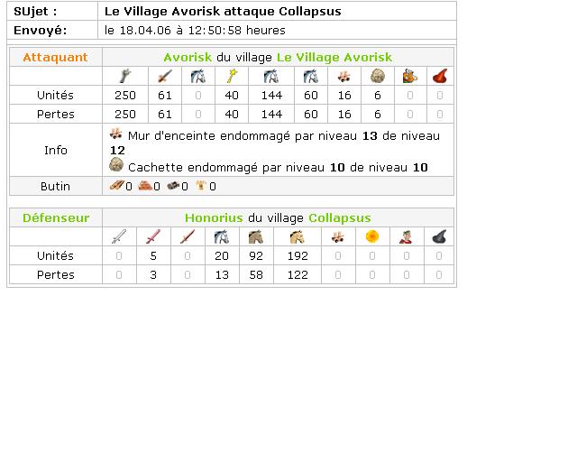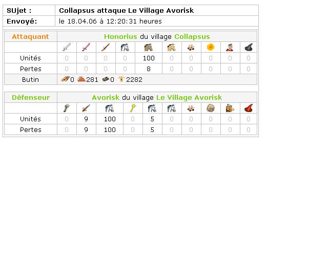 Voici les rapports de combats : la contre attaque menée par Loda en mon absence et l'attaque d'Avorisk.